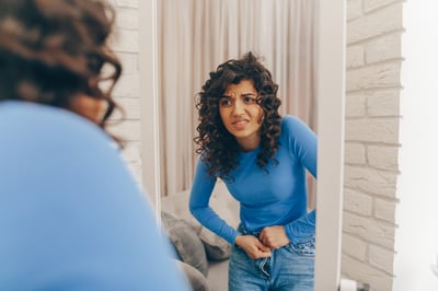 Essas calças ficam-te apertadasThose pants are tight on you (when you put them on)