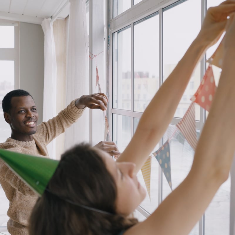 Pedro arrives early to Sofia’s party and offers to help with the decorations. Throughout their dialogue, pay special attention to the plural forms of different words.